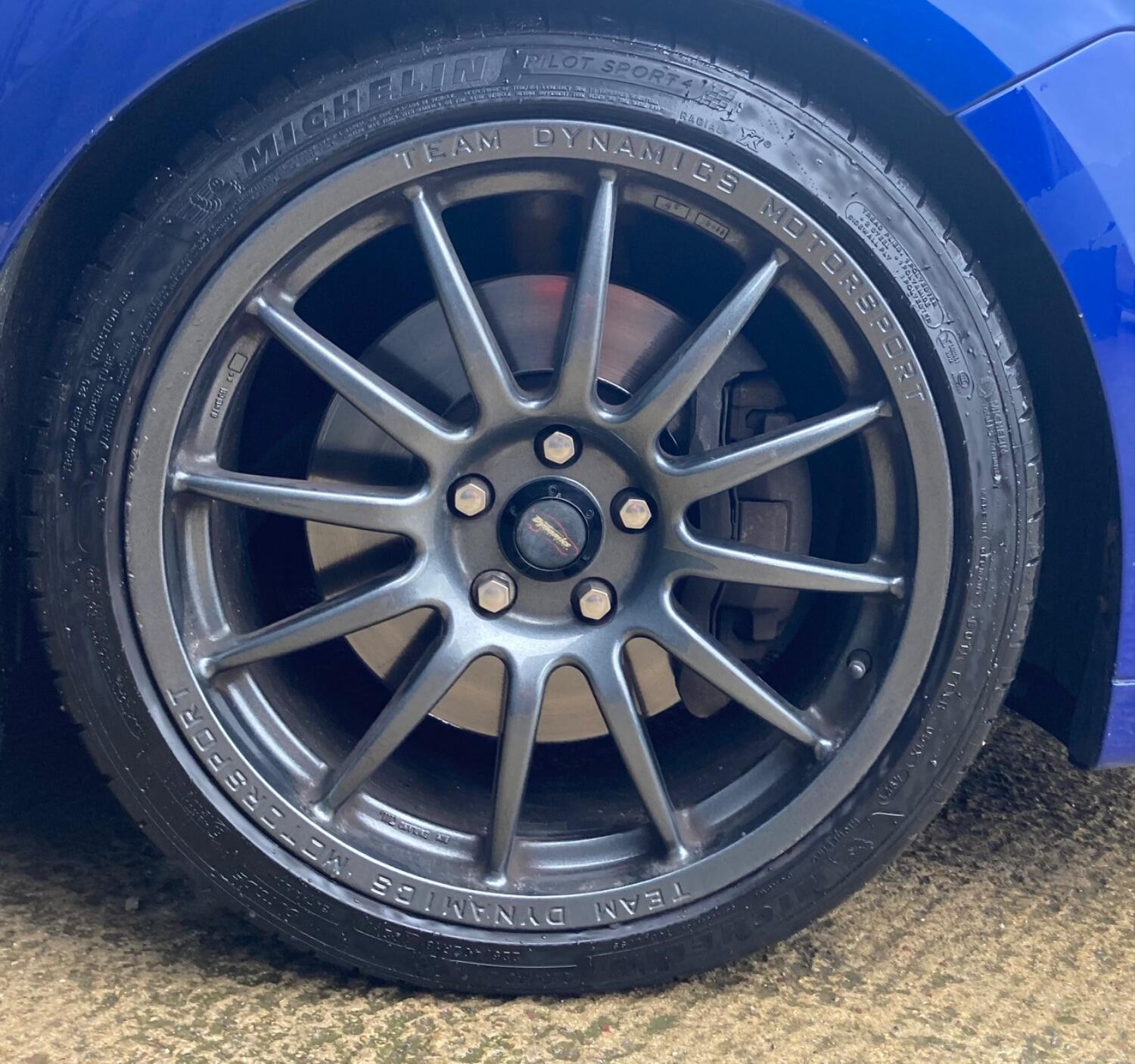 18" Team Dynamic pro race 1.2's with matching Michelin PS4 tyres